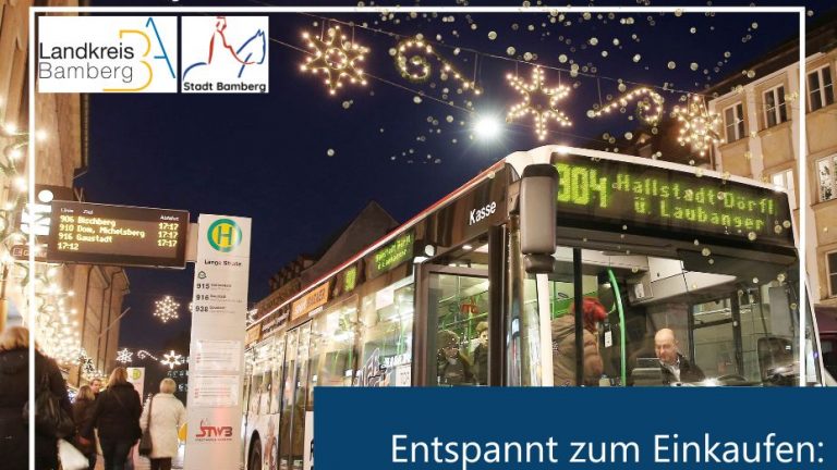 Gute Nachricht für alle Menschen in Bamberg Stadt und Landkreis: An den vier Samstagen vor Weihnachten können alle Menschen kostenlos mit dem Bus und dem Zug fahren! Am 29. November, 06.