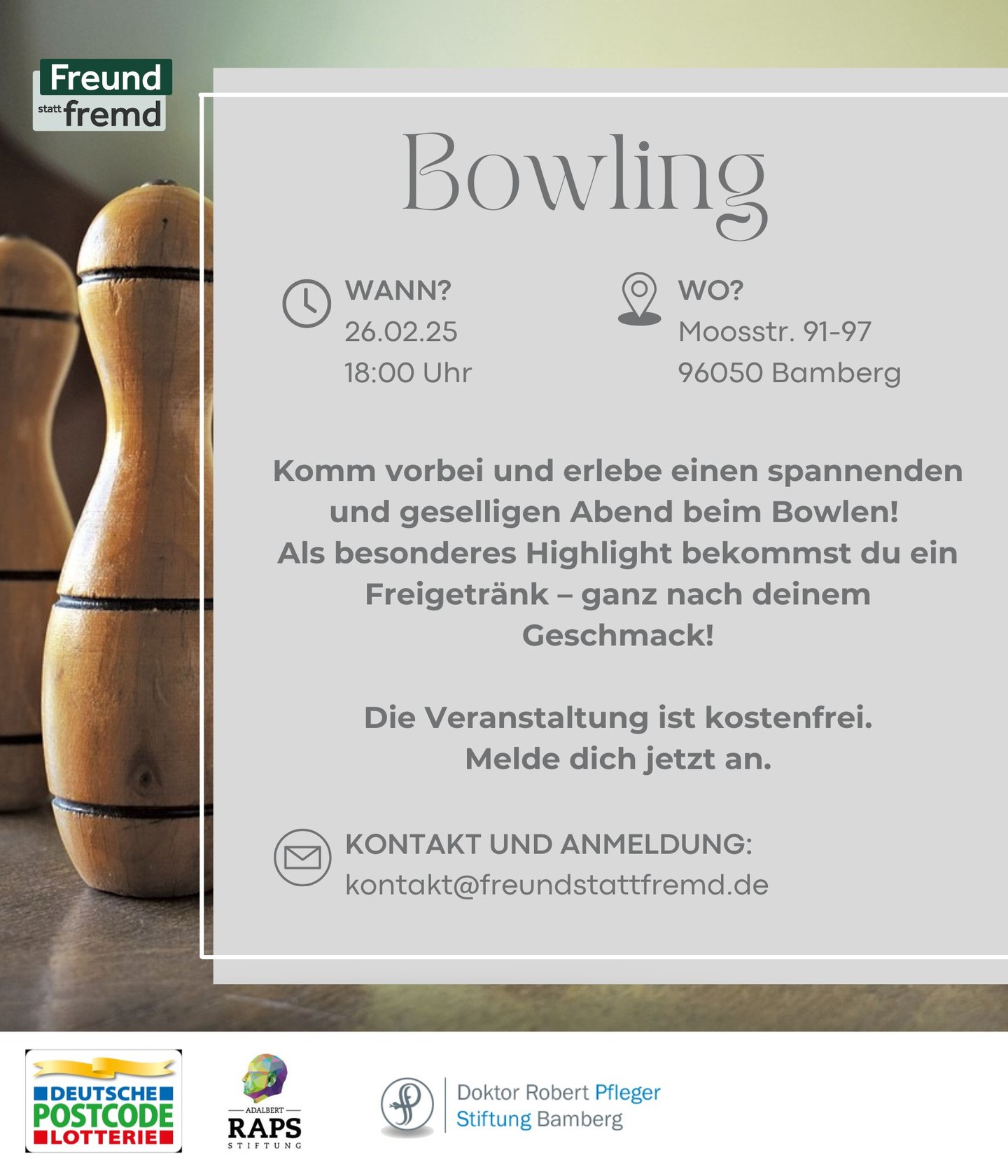 Wir laden euch zu einem tollen Bowlingabend ein! Kommt vorbei und habt Spaß bei einer Runde Bowling – und das Beste: Ihr bekommt ein Freigetränk! 🍹